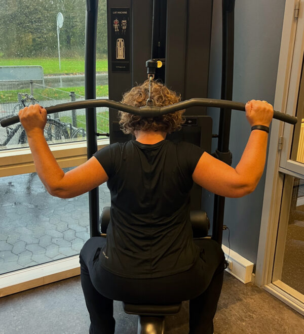 Træner de brede rygmuskler ned over midten af ryggen samt arme og skuldre.