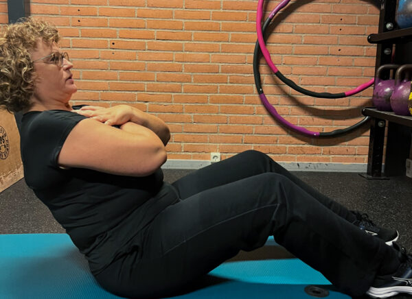 • Læg gerne ryglænet lidt tilbage – det gør øvelsen mildere for lænden.