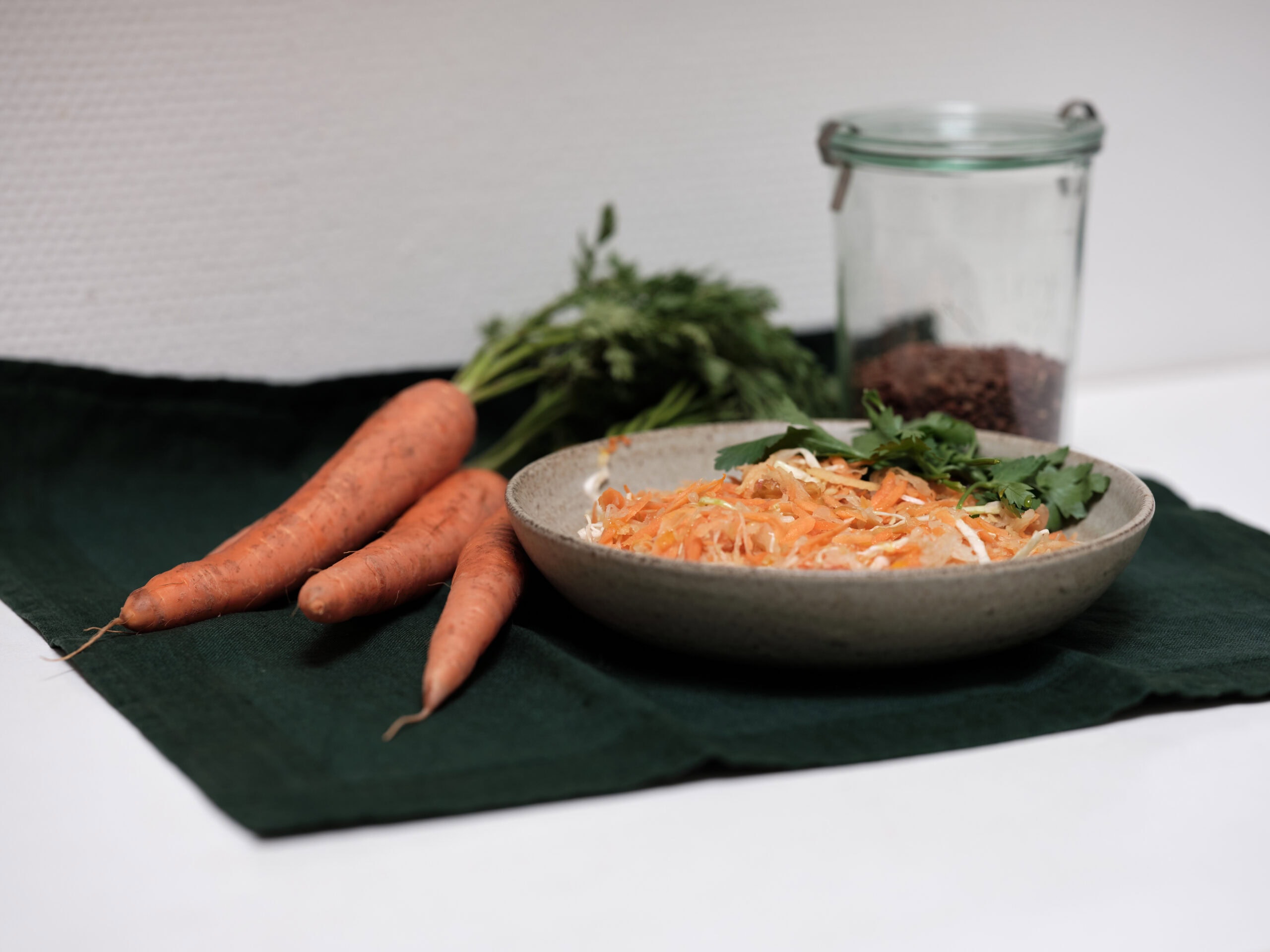 - 100 g spidskålRiv gulerødder og æble og snit spidskålen så fint, du kan.
