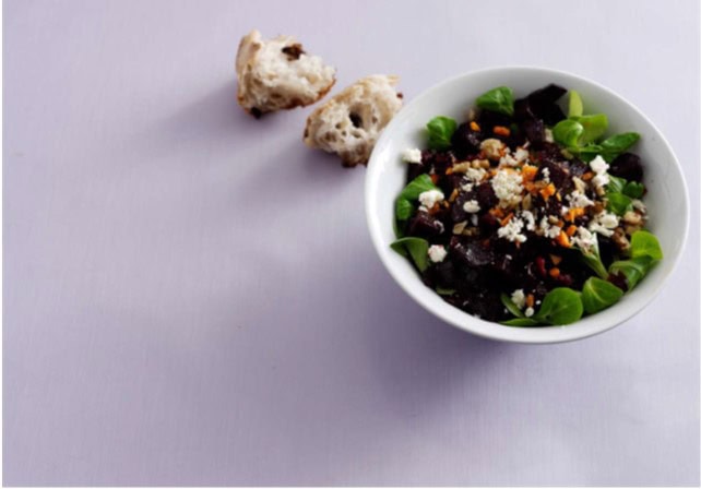 Rødbedesalaten kan også bruges som tilbehør til f.eks. stegt fisk. Her kan du evt. udelade feta og valnødder. Lav evt. dobbeltportion så du har til madpakken eller til frokost til flere dage. Salaten kan også serveres til brunch.