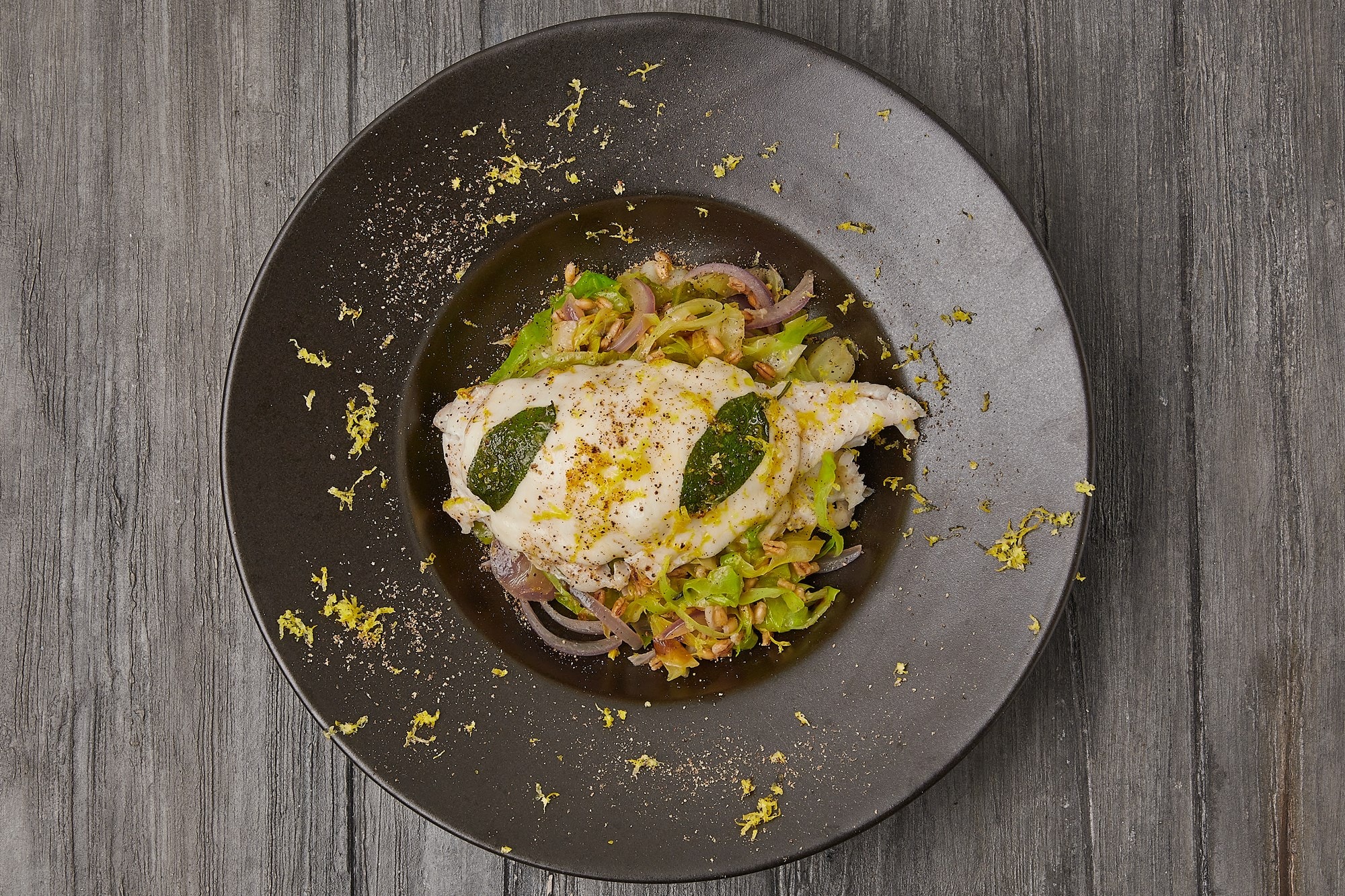 Riv citronskal over retten til sidst, som vist på billedet.