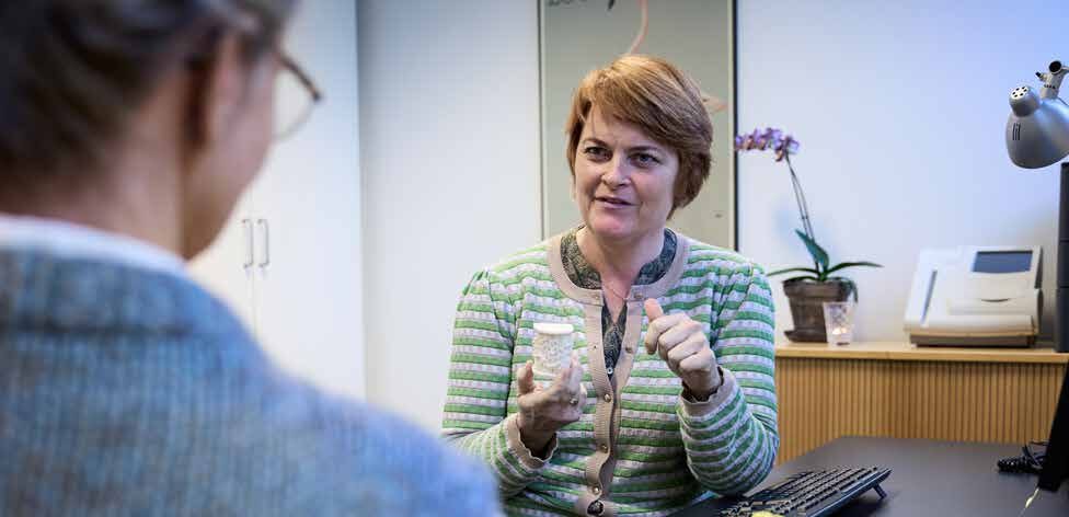 ”Hvis vi giver folk medicin, så skal vi have styr på, hvad vi gør. Det er lidt specielt med knogleskørhed, for i virkeligheden er der ikke så meget at kontrollere i hverdagen. Og så alligevel. For er patienten ældre og tager medicin, så skal vi være sikre på, at deres nyretal er i orden. Det er også vigtigt at holde øje med, om medicinen tages rigtigt, for ellers virker den ikke. Og holde sig motioneret og aktiv og forebygge fald. Patienten må ikke blive bange for at bevæge sig,” forklarer Johan Reventlow.
